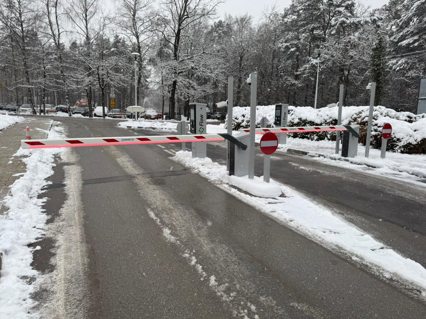 W ramach projektu zamontowaliśmy cztery szlabany Magnetic Parking Pro z ramionami 3,5 m oraz podświetleniem LED. System obejmuje fotokomórki, pętle indukcyjne oraz moduły SOS, zwiększające bezpieczeństwo i niezawodność.
