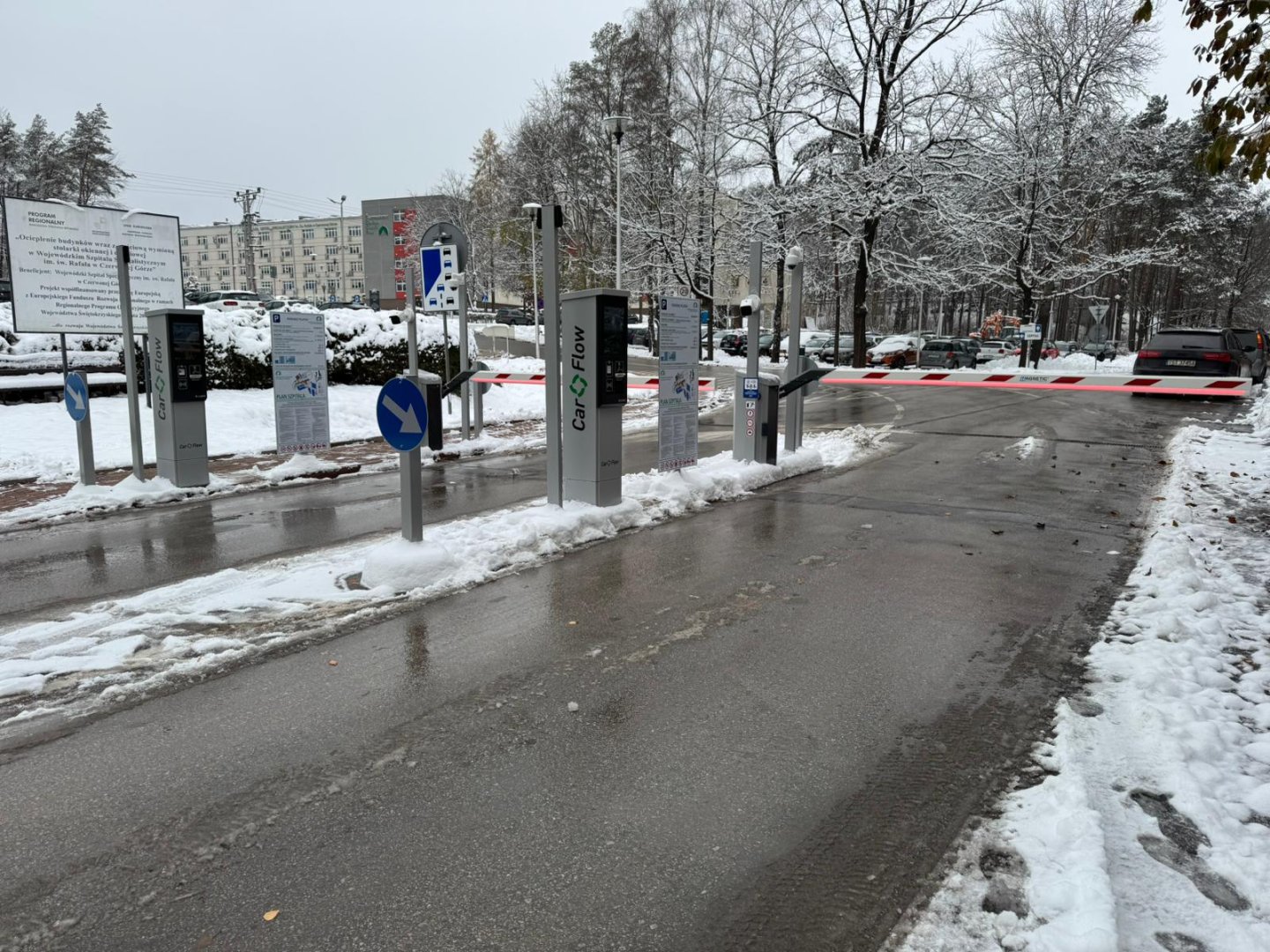 Nowoczesne terminale, szlabany, kasy parkingowe, monitoring oraz kamery LPR do odczytu tablic rejestracyjnych – pełna automatyzacja obsługi parkingu Wojewódzkiego Szpitala Specjalistycznego Imienia Św. Rafała w Czerwonej Górze.